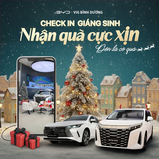 Giáng Sinh này, BYD VIG Bình Dương mang đến một không gian trải nghiệm công nghệ V2L được đầu tư chỉn chu, hiện đại – kết hợp decor mùa lễ hội tinh tế